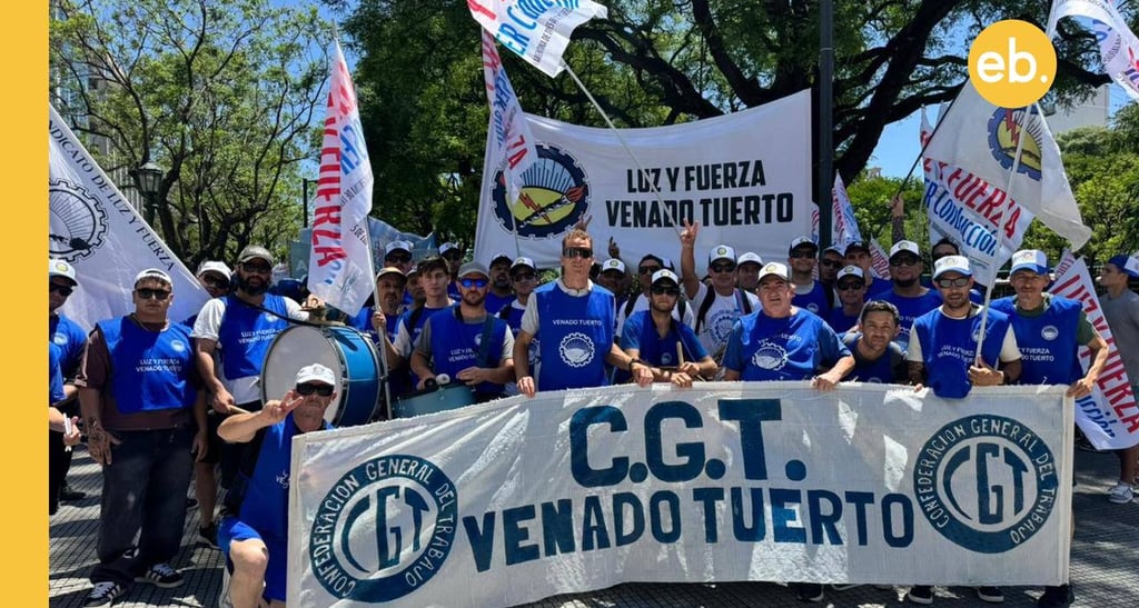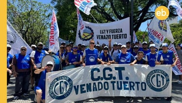 Representantes de la CGT Regional Venado Tuerto participaron el 18 de diciembre de la movilización nacional realizada en Plaza de Mayo en rechazo al proyecto de reforma laboral impulsado por el gobierno nacional. La convocatoria fue encabezada por la CGT y contó con la participación de sindicatos de todo el país, junto a otras organizaciones gremiales y sociales.