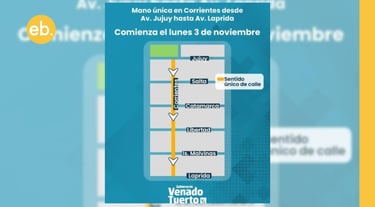 A partir del lunes 3 de noviembre, las cuadras comprendidas entre Av. Jujuy y Av. Laprida, en el barrio San Cayetano, dejarán de tener tránsito en doble mano. Según lo dispuesto por la Ordenanza Municipal N° 5941/25, calle Corrientes pasará a tener sentido único en dirección noroeste–sureste.